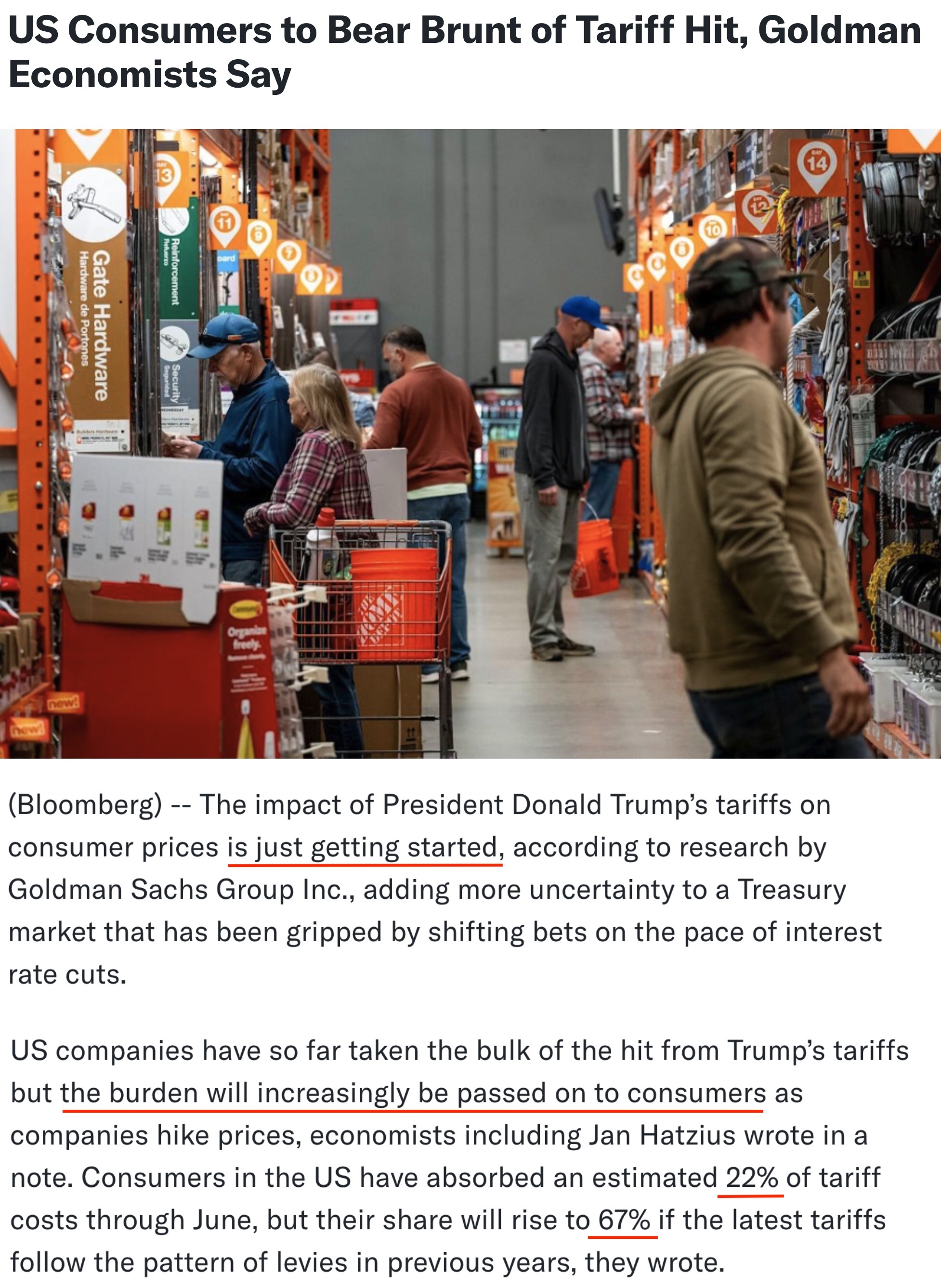 从需求端看,按照高盛集团11日发布的最新研究演讲,关税对消费者价钱的影响曾经起头。虽然截至目前,美国企业承受了关税的大部门成本,但跟着企业提高价钱,承担将越来越多地给消费者。