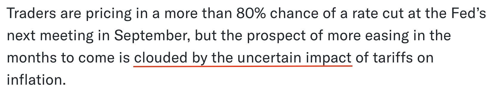 △彭博社征引业内人士的概念预测,即便9月降息,美联储正在将来几个月进一步降息的前景也将因关税对通缩的不确定影响而蒙上暗影。